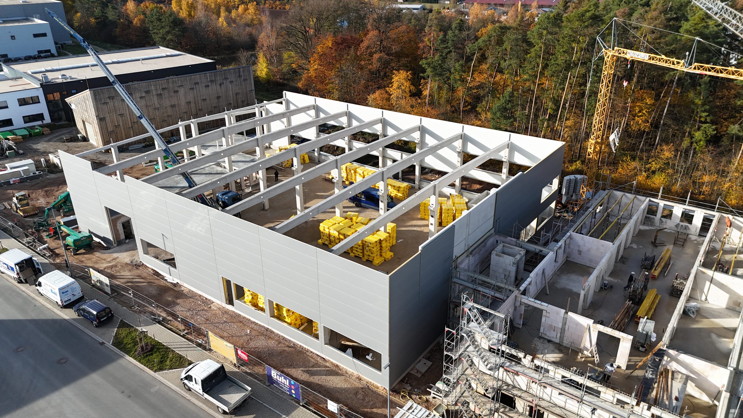 Unsere neue Firmenzentrale nimmt Gestalt an!14. November 2025Das Bürogebäude (rechts im Bild) wächst sichtbar in die Höhe – die Struktur ist erkennbar... -